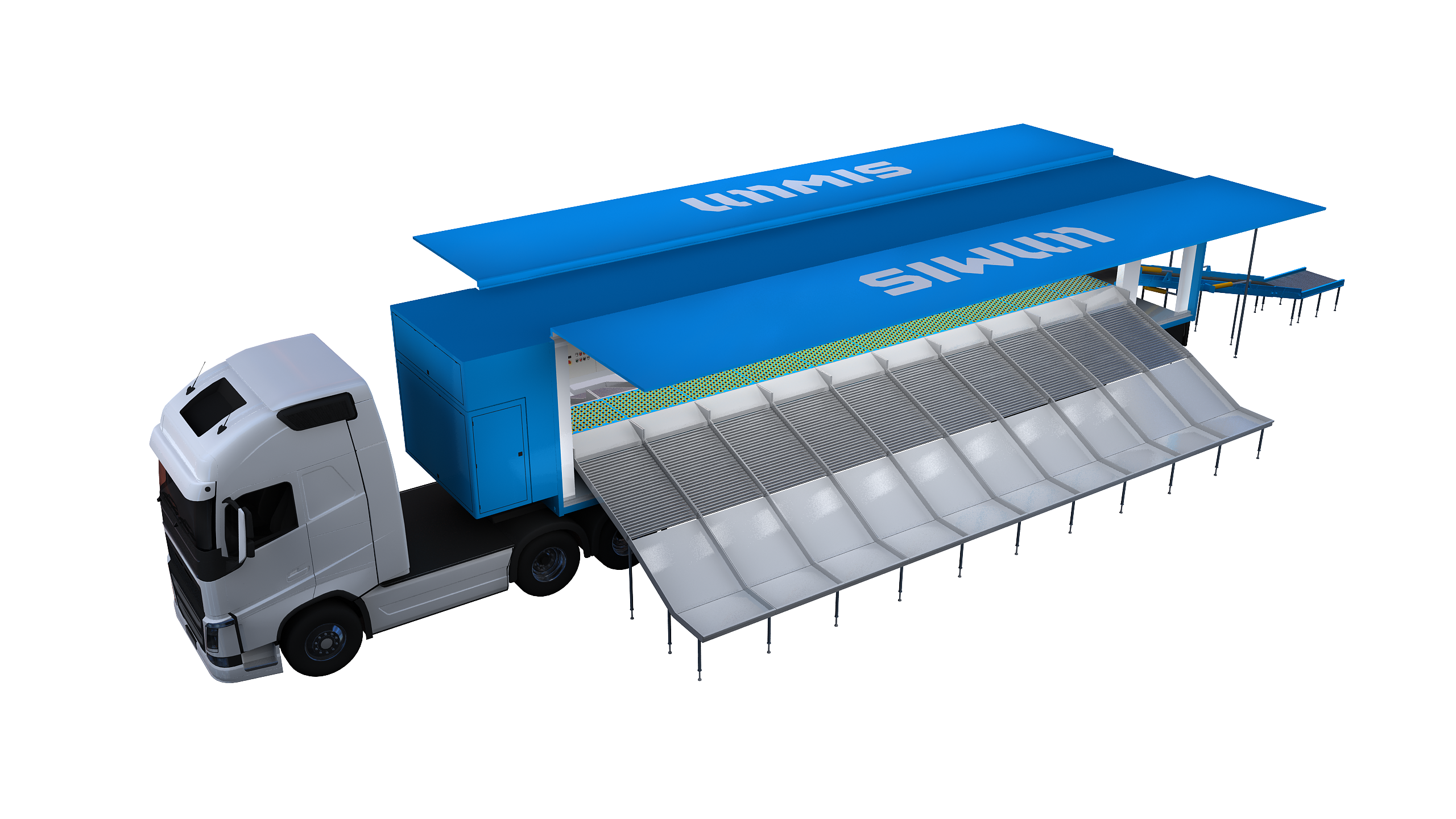 Modular Design: The modular assembly is adaptable to various application sites, ranging from large to medium to small sizes. It can be integrated into a 12m wing-opening semi-trailer for flexible mobile transportation.