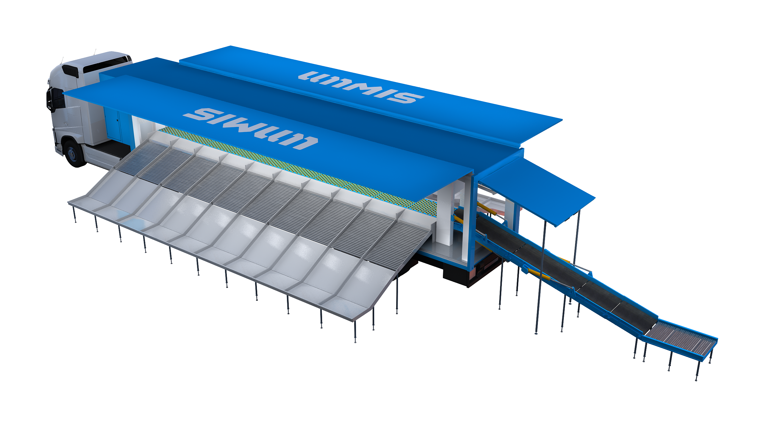 The SIWUN Mobile Sorting Unit is an innovative logistics solution that integrates a high-speed intelligent sorting system onto a purpose-built specialty vehicle platform. Featuring mobile deployment capabilities and ready-to-use functionality upon arrival, this unit not only supplements seasonal sorting capacity but also enables the relocation of sorting operations to front-end locations. It efficiently manages the surge in logistics sorting demands that occur during scenarios such as fresh produce harvests, e-commerce sales events, and direct shipments of specialty economy goods—significantly enhancing logistics operational efficiency and agility while lowering operational costs.